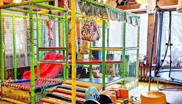 Для маленьких посетителей предусмотрена отдельная игровая зона, где они могут порезвиться, пока родители отдыхают. Здесь есть горки, сухой бассейн, батут. За детьми присматривают опытные няни, которые смогут развлечь ребёнка увлекательными развивающими играми, рисованием или раскрасками. Также персонал ресторана предоставят для малышей удобные детские стульчики и столики.