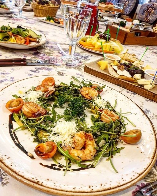 Шеф-повар ресторана готовит наваристые супы, приправленные свежей зеленью, разнообразные салаты,аппетитные холодные и горячие закуски, овощное ассорти, рыбную нарезку, сырную тарелку, мясной сет, разные виды итальянской пасты, основные блюда из мяса, птицы и морепродуктов с сытными гарнирами.